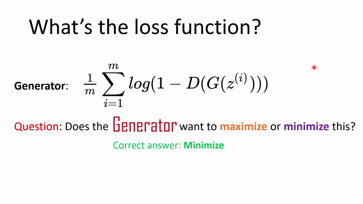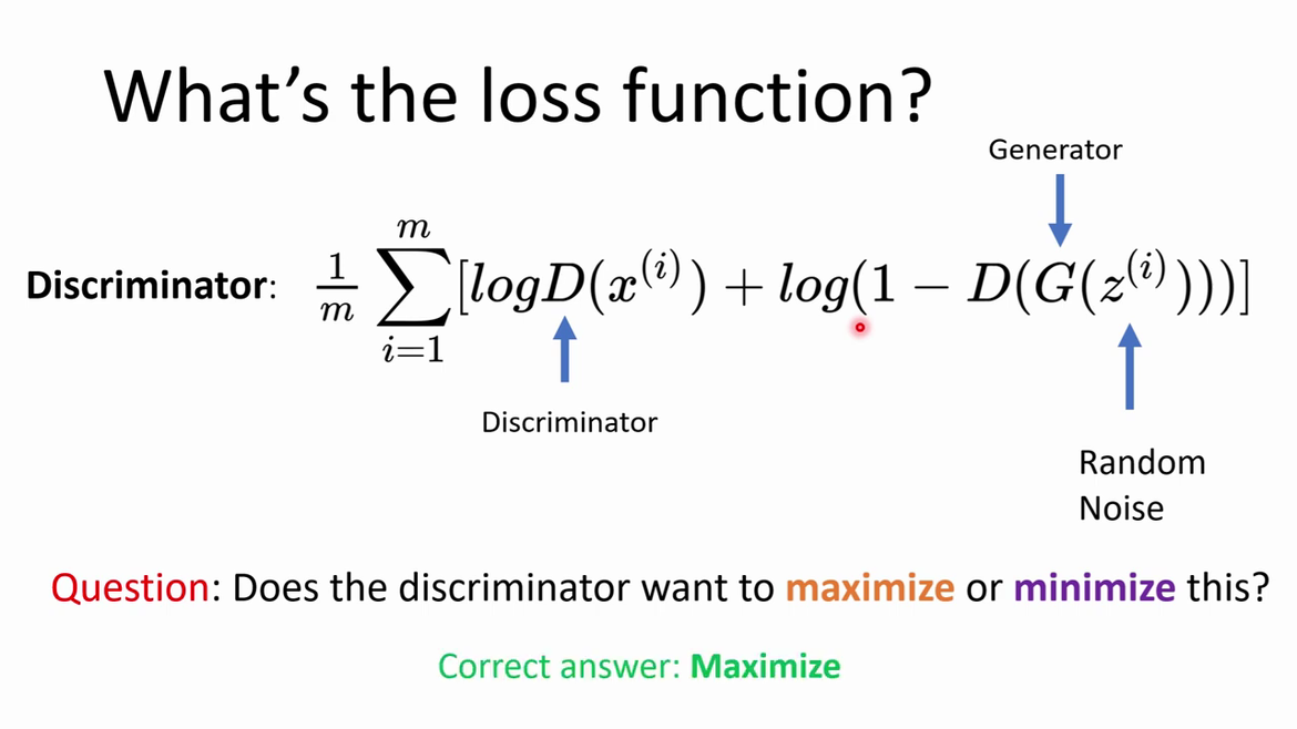 Here the job of the discriminator is to maximize the probability of assigning the correct label and train generator to minimize log(1-D(G(z))).