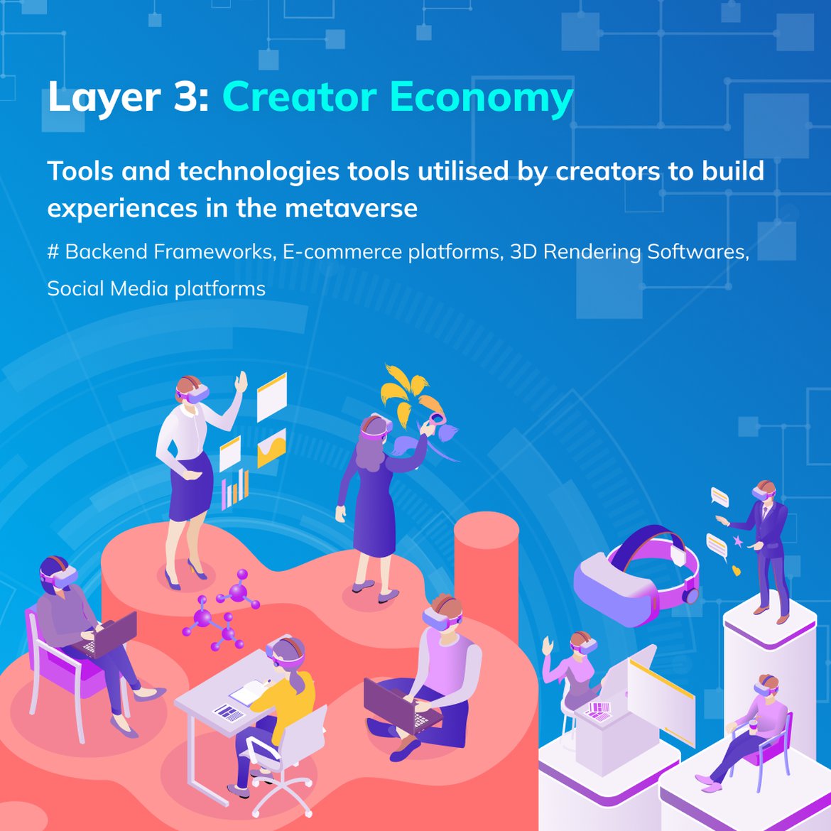 Directed toward the rise of a new era for creators in general, this layer consists of all the tools and technologies utilised by creators to build the various experiences available in the metaverse. Existing creators aside, even consumers have the opportunity to become a creator themselves through such tools and technologies.